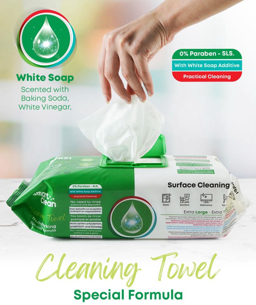 Cleanizi Reinigungstücher mit weißer Seife, extra groß, 100 Stück